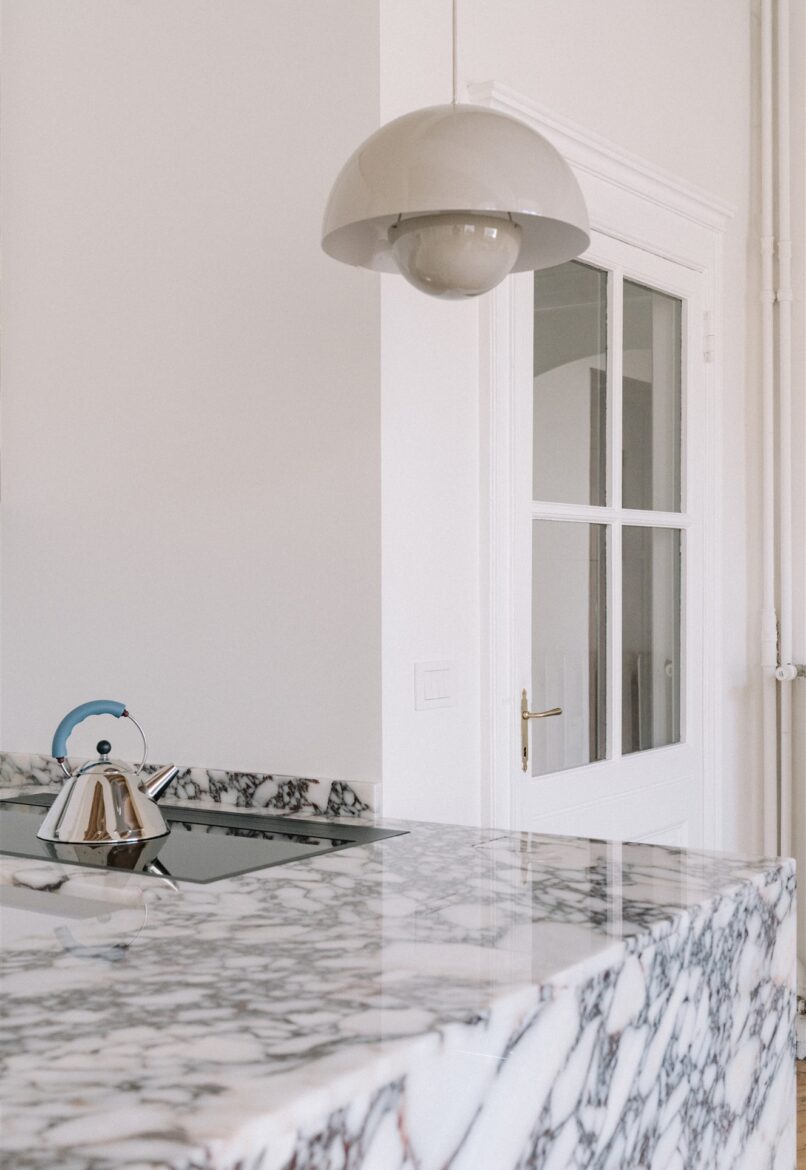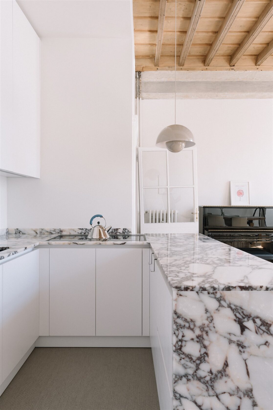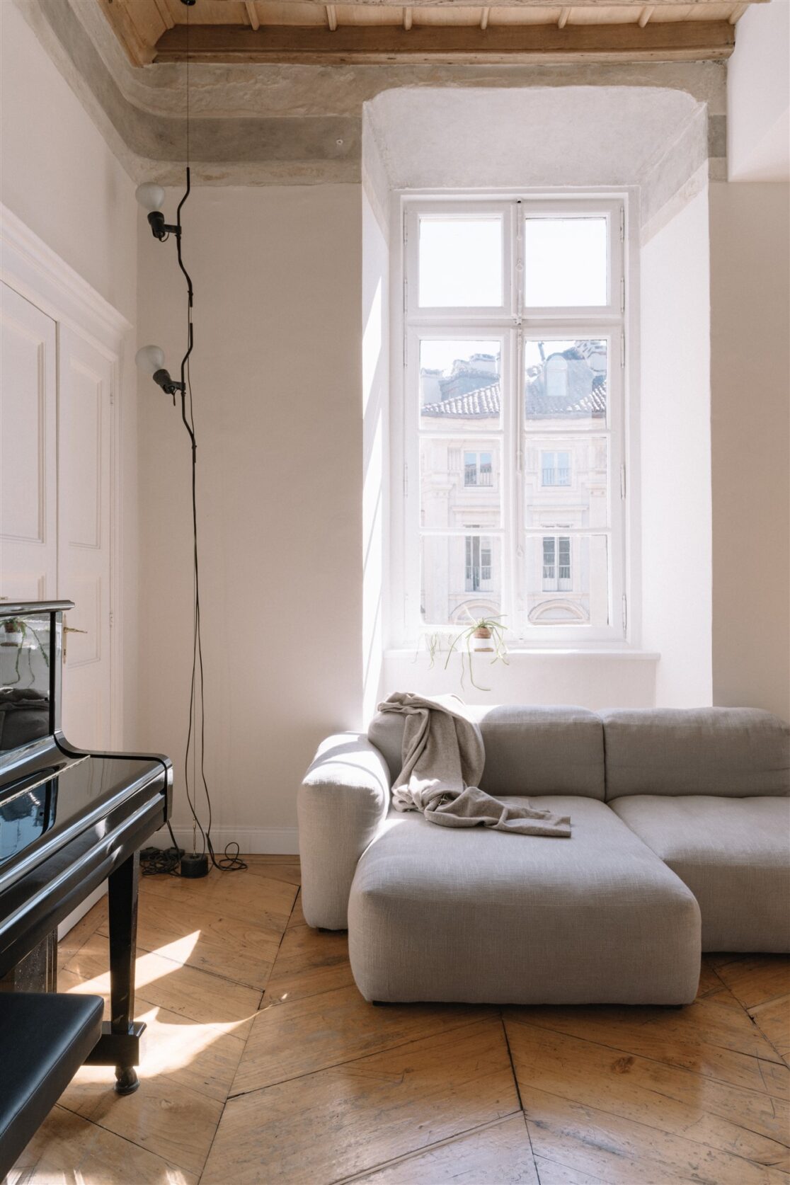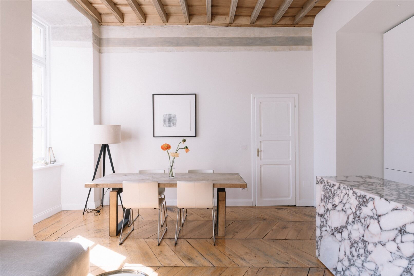 Questo progetto riporta in luce alcuni elementi tipici dell’architettura settecentesca torinese: pavimento a spina in pioppo, soffitto a cassettoni, le tracce di una cornice a coronamento della zona giorno.