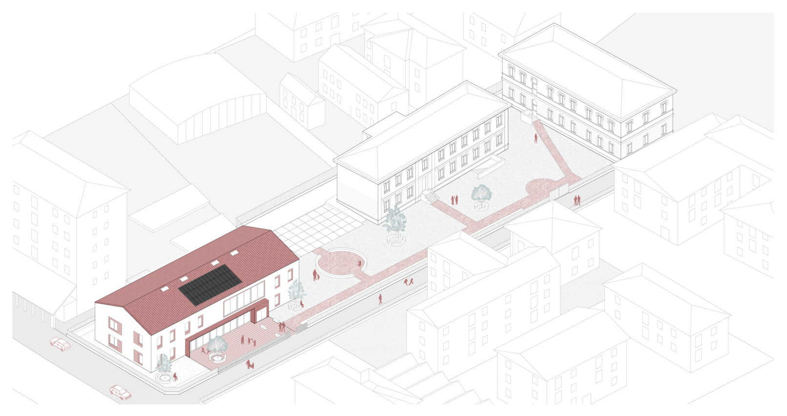 Il progetto della nuova scuola primaria si inserisce nel più ampio plesso scolastico di Gravellona Toce sul sedime del vecchio edificio, stabilendo un nuovo dialogo con il paesaggio montano circostante e i fabbricati storici esistenti.