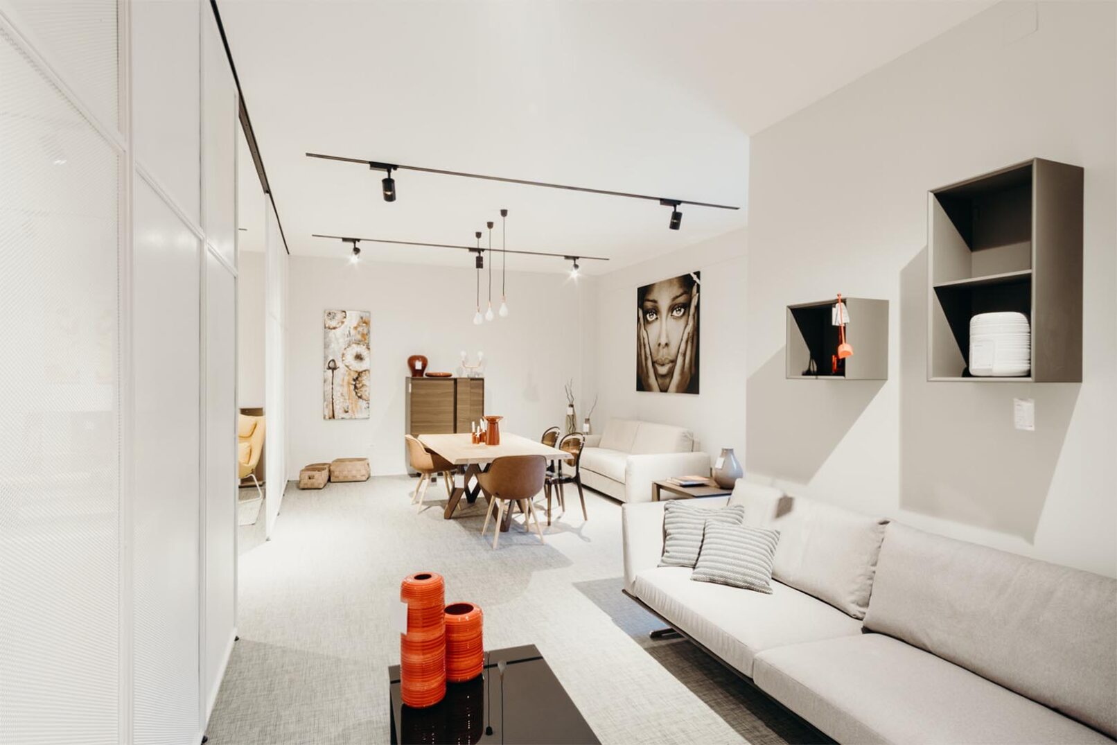 Il nuovo pavimento, realizzato con un tappeto in tramatura vinilica, si integra con il resto degli elementi per dar vita ad ambiente chiaro e luminoso, che esalta i colori e i materiali degli arredi esposti.